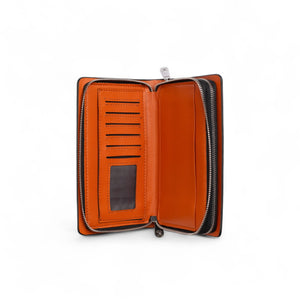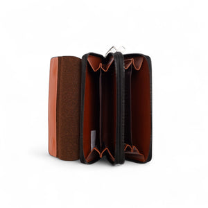 Kangaroo Genuine Leather Long Wallet – Elegant Brown Zipper Clutch with Built-with Phone Holder