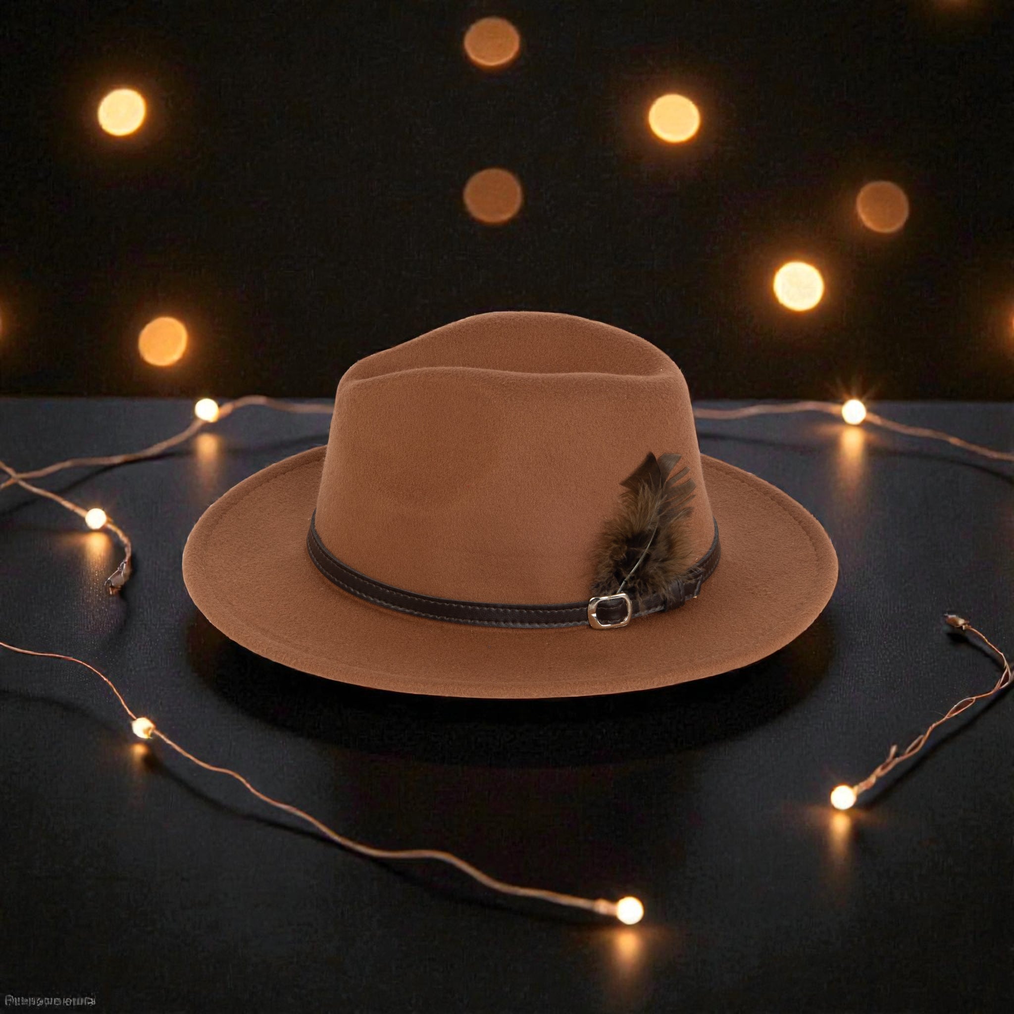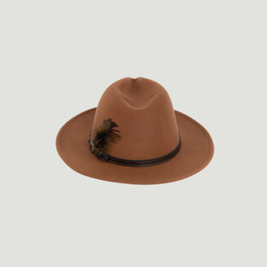 Fedora Hat – Premium Wool Felt, Classic Timeless Style, Elegant & Durable Design – Brown with Finished with a Dark Brown leather strap and feather detail